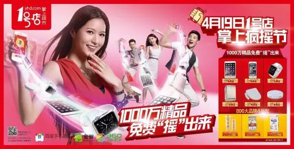 4、1号店:在418期间,也开始玩起了大型促销活动,虽然选定的日子错开一天,也难逃借势之嫌,“419掌上疯摇节”这是微信摇一摇附体的节奏,是不是摇起来才够疯狂?